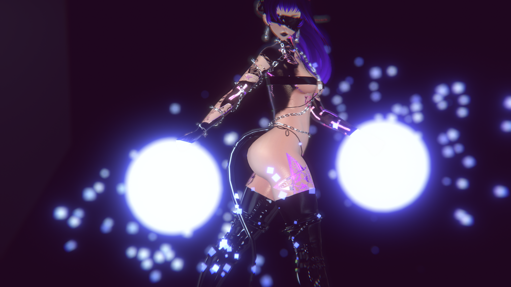 -(Arm accesories, bodysuit, horns, tail, face, two hairs , top, panties, skirt ,hue , boots, pasties and pole)
